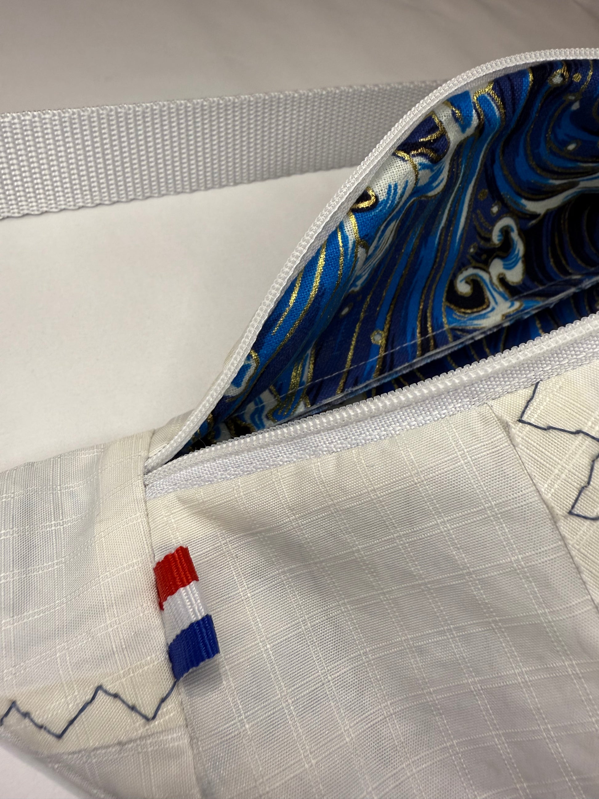 🤍 Fermeture blanche & doublure vagues colorée
